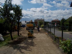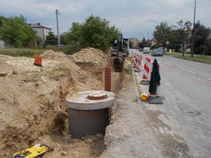 – budowę kanału z rur kamionkowych DN200 w technologii przecisku w rurze osłonowej stalowej – włączenia do istniejących studni w ul. Koszarowej, ul. Lubelskiej, przejścia pod Al. Tysiąclecia w kierunku ul. Nowej oraz przejść pod drzewami w technologii przecisku razem około 140m